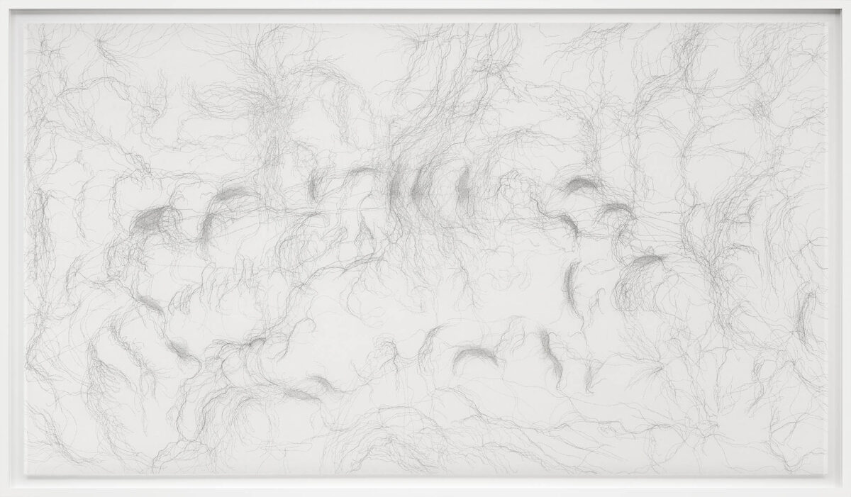 I got nothing, Ma, to live up to, in progress, text: Die Kinder von Auschwitz (The Children of Auschwitz) by Alwin Meyer, ink on gampi paper, 112 x 190 cm, 2023.